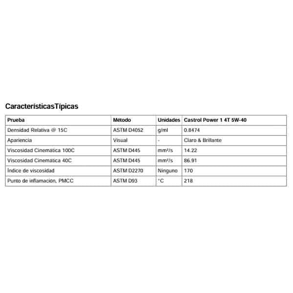 Castrol POWER 1 es un aceite sintético, de calidad Premium, formulado para motocicletas de 4 tiempos. Ha sido probado y comprobado para brindar una aceleración superior al giro del acelerador dado que fluye con rapidez y minimiza la fricción en el motor.